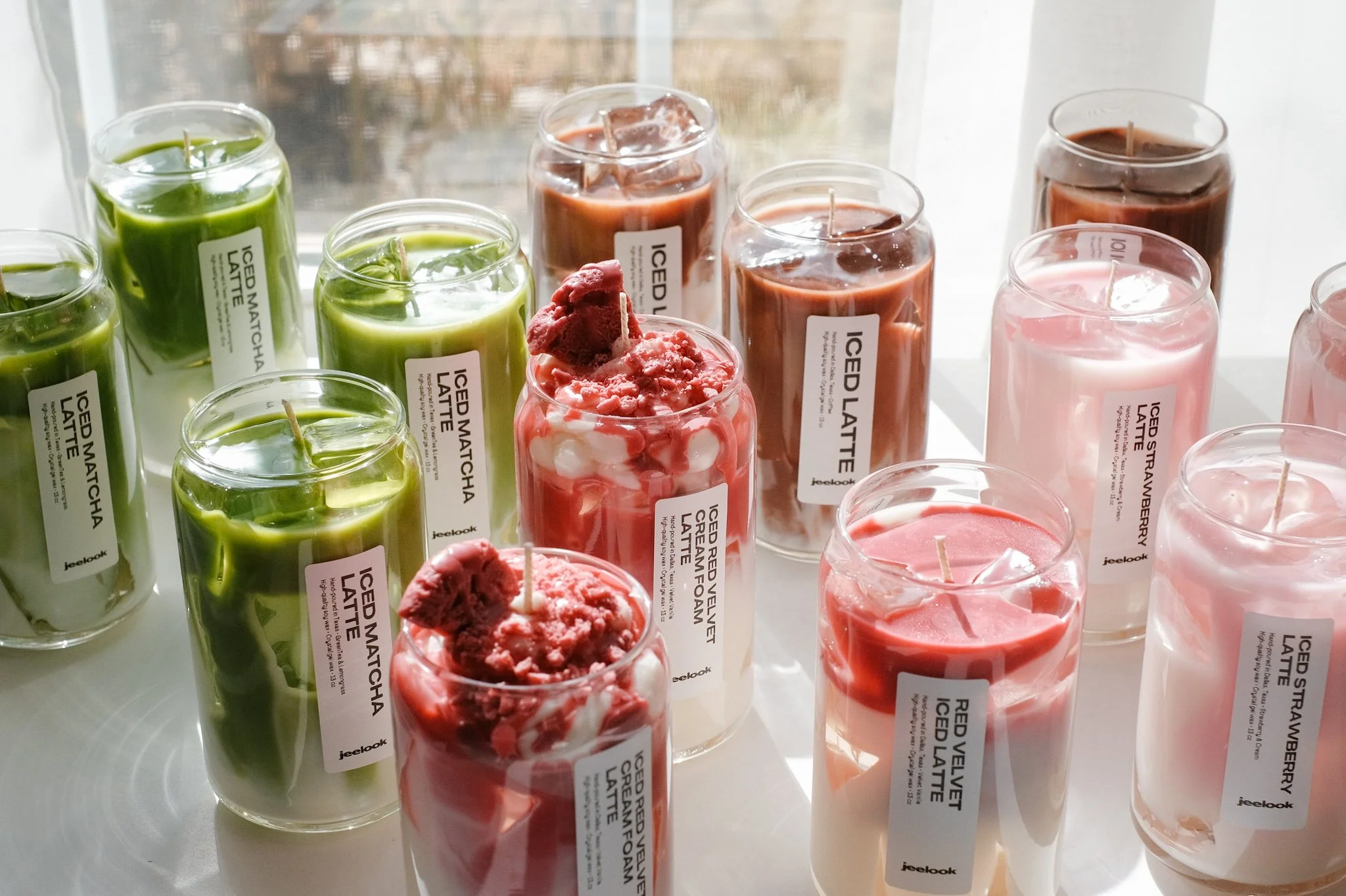 Drink-inspired candles with creamy swirls and gel βice.β Fun, aesthetic, and perfect for gifts or dΓ©cor.